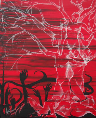 Por otro lado, la transfiguración sostenida que procede del ritmo de pasajes formales y de lo diferido anatómico -¿mutilaciones?- potencia la intención expresiva del drama ficcional escenificado y expone los recursos gráficos como poética de la imagen.